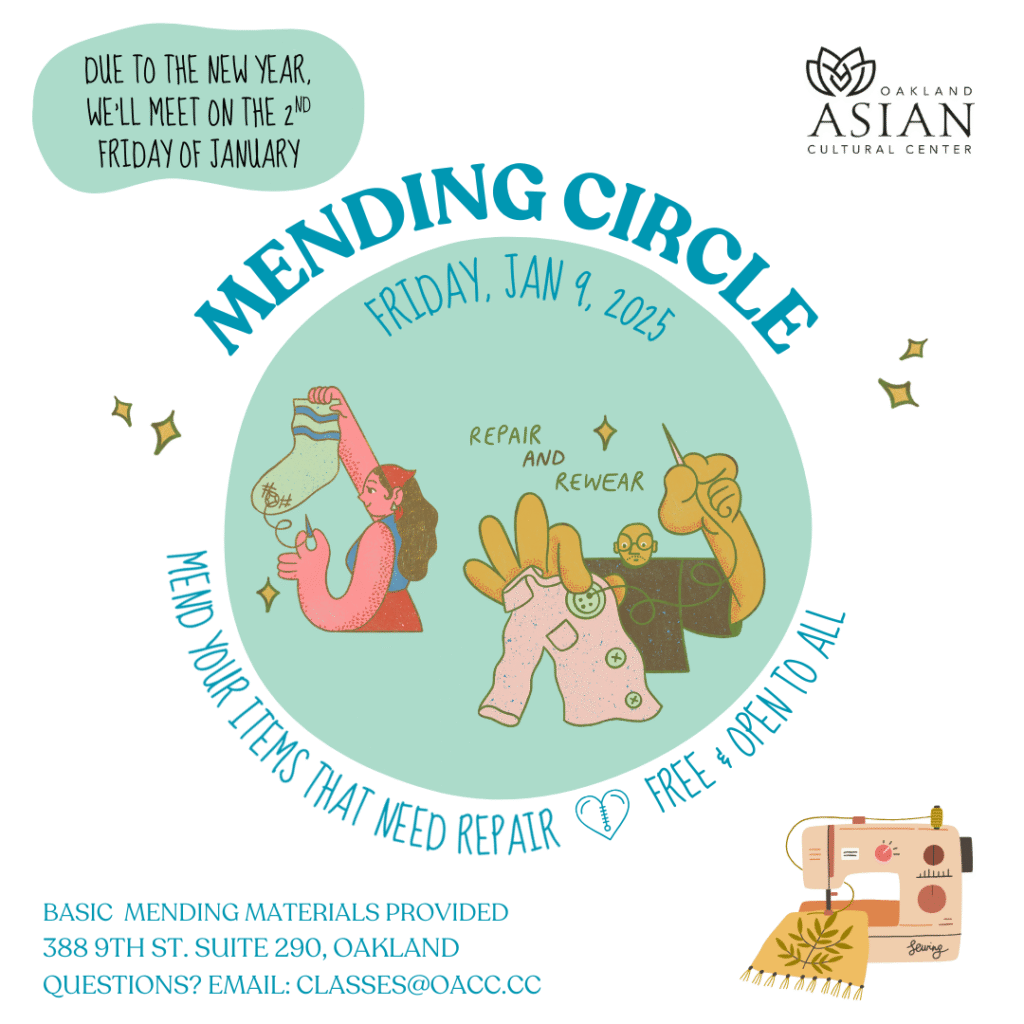 Do you have socks that need repair? Are you curious about visible mending? Do you like keeping clothing out of landfills? If you answered yes to any of these, or just want company while you sew, join us for our next Mending Circle at OACC on Friday, Jan 9, at 12 noon.